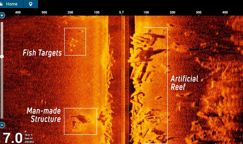 1} CHIRP Side-Scan provides benefits for coastal and offshore fishing that cannot be duplicated with a single frequency traditional fish finder allowing you to see fish targets near piers and bridges before casting a lure or jig.